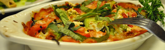 You don't have to know if you like eggplant to enjoy this one. Three slices of grilled eggplant simmered in wine and layered with parmesan, mozzarella and RAZZ�S house made organic marinara sauce.